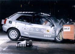 Kuljettajan ovi tuki oviaukkoa ja auttoi pitämään matkustamon ehjänä. Törmäyksen jälkeen matkustamon rakenne oli vakaa ja rakenteet työntyivät sisään vain kohtalaisesti. Etuturvatyynyt suojasivat kuljettajan ja matkustajan hyvin. Turvavyöt kuitenkin kuormittivat rintakehää, erityisesti matkustajalla. Ohjauspylvään lukko ja ohjauspyörän säädin kiinnikkeineen vaaransivat kuljettajan polvet ja reidet.