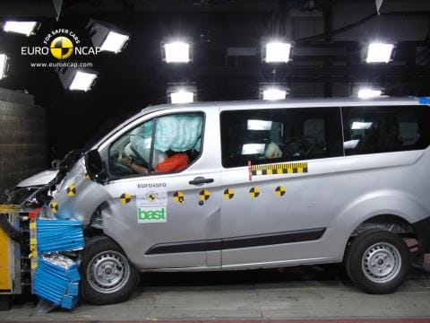 Matkustamon rakenteet säilyttivät etutörmäyksessä hyvin muotonsa. Testinukkejen lukemat osoittivat, että etupenkeillä istuvien polvet ja reidet saivat hyvän suojan. Kojelauta aiheuttaa kuitenkin loukkaantumisriskin erikokoisille ja eri asennoissa istuville. Sivutörmäystestissä Transit Custom sai täydet pisteet suojaamalla hyvin kaikkia vartalon osia. Sivutörmäystä voimakkaammassa pylvästestissä rintakehä ja vatsan alue saivat riittävän suojan, pää ja lantio hyvän suojan. Istuin ja pääntuki antavat huonon suojan peräänajoa seuraavaa piiskaheilahdusta vastaan.