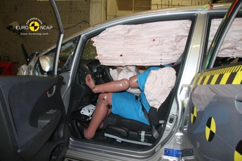 Honda Jazzin matkustamon rakenteet säilyttivät etutörmäyksessä hyvin muotonsa. Kuljettajan jalkatila menetti muotonsa, mutta se säilytti vakautensa eikä repeytynyt. Polkimien ja etenkin kytkinpolkimen siirtyminen oli voimakasta, mikä johti pistemenetykseen. Kojelaudan muutokset aiheuttivat vaaran etumatkustajien polville ja reisille. Pylvästestissä rintakehän suoja oli heikko, mikä aiheutti rintakehän vammautumisriskin. Muut kehonosat saivat kuitenkin hyvän suojan sekä sivutörmäys- että pylvästestissä. Peräänajoa seuraavassa piiskaheilahduksessa matkustajien suoja oli vähäinen.