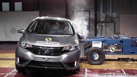 Honda Jazzissa on automaattinen hätäjarrutusjärjestelmä, joka antaa taajamanopeuksilla lisäsuojaa piiskaniskuvammaa vastaan. Järjestelmä toimi hyvin Euro NCAP:n testeissä.