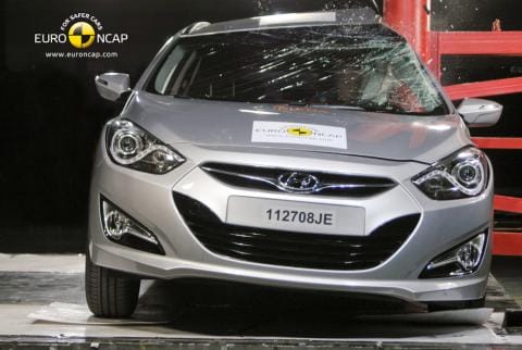 Matkustamon rakenteet säilyttivät etutörmäyksessä hyvin muotonsa. Kuljettajan polviturvatyyny on vakiovaruste ja testinuket osoittivat, että etupenkeillä istuvien polvet, reidet ja lantiot saivat hyvän suojan. Ohjauspylväs aiheuttaa loukkaantumisriskin, mutta Hyundai pystyi osoittamaan, että kojelauta antoi muuten hyvän suojan. Sivutörmäystestissä i40 sai täydet pisteet ja pylvästestissä rintakehän suoja oli riittävä. Istuin ja pääntuki antoivat hyvän suojan peräänajoa seuraavaa piiskaheilahdusta vastaan.
