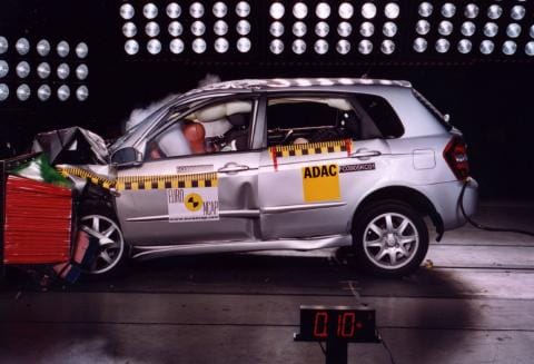 Etutörmäystestissä Kian polkimet nousivat kuljettajan sääriä ja nilkkoja vasten. Sivutörmäyksessä puolestaan kuljettajan rintakehä ja vatsa joutuivat kovalle rasitukselle. Etumatkustajan turvatyynyä ei voitu myöskään kytkeä pois päältä. Turvaistuimen sijoittamisesta selkä menosuuntaan etuistuimelle varoitettiin tarrassa, joka oli ainoastaan englanninkielinen ja peittyi aurinkosuojan alle sen ollessa pois käytöstä. Huomautettavaa tuli myös jalankulkijatörmäystestistä, jossa jalankulkijan pää osui puskurin ja konepeiton reunaan.