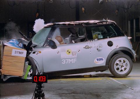 BMW:lle sallittiin Minin uudelleentestaus turvatyynyyn ja oven rakenteisiin tehtyjen muutosten jälkeen. Nämä muutokset ovat voimassa kaikissa toukokuun 2002 jälkeen valmistetuissa Mini-malleissa. Minin matkustamo säilytti rakenteensa hyvin sekä etu- että sivutörmäyksessä. Hyvää sivutörmäyssuojaa heikensi rintakehän korkea kuormitus. Valmistajan toivomuksesta sivutörmäyssuojaa testattiin myös autolla, jossa oli lisävarusteinen päätä suojaava sivuturvatyyny. Lasten turvaistuinten antamassa suojassa oli puutteita ja jalankulkijoiden turvallisuus oli heikko.
