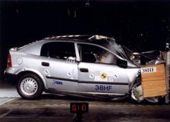 Opel Astran tulos oli hyvä neljä tähteä, mutta sivutörmäyssuojaa voi vielä kehittää. Astra ei täyttänyt lokakuussa 1998 voimaantulevia uusien autojen sivutörmäysnormeja, koska takaovi aukesi sivutörmäystestissä. Etutörmäyksen tulos oli hyvä, kuljettajan reidet ja sääret olivat erityisen hyvin suojattuja. Testissä käytettiin Opelin omia turvaistuimia, jotka eivät olleet yhteensopivia turvavöiden kanssa. Jalankulkijoiden suoja oli heikko ja tuloksena vain yksi tähti.