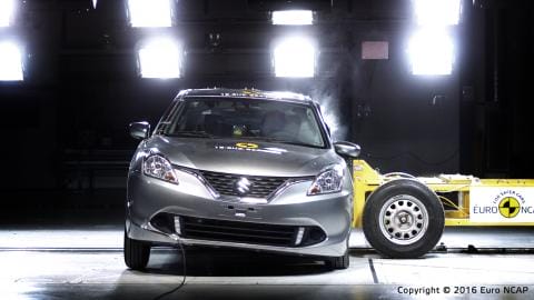 Suzuki Balenolle on tehty kaksi arviointia: toinen perustuu vakiovarusteena oleviin turvavarusteisiin ja toinen lisävarusteena saatavaan ”Radar Brake Support”-turvavarustepakettiin. Tämä arvio koskee pelkillä vakioturvavarusteilla varustettuja autoja.