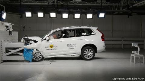 XC90:n automaattinen hätäjarrutusjärjestelmä tunnistaa automaattisesti jalankulkija ja pyöräilijät sekä muut autot. Euro NCAP aloittaa tällaisten toimintojen testaamisen vuonna 2016, joten tässä testissä sitä ei huomioitu.