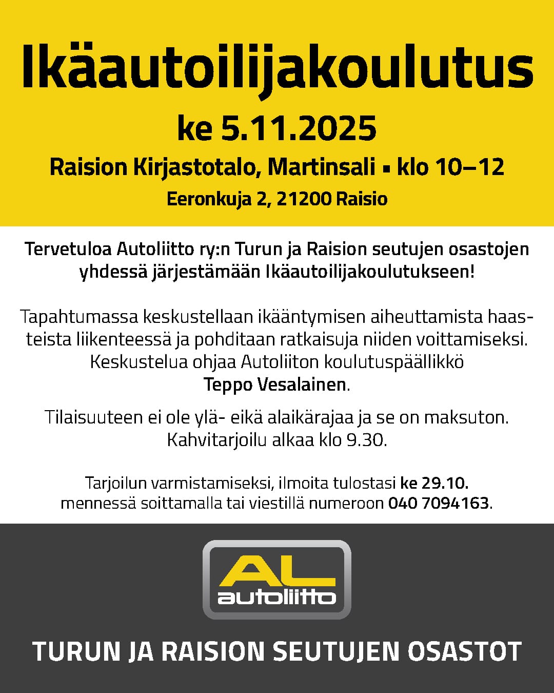 IKÄAUTOILIJAKOULUTUS RAISIOSSA