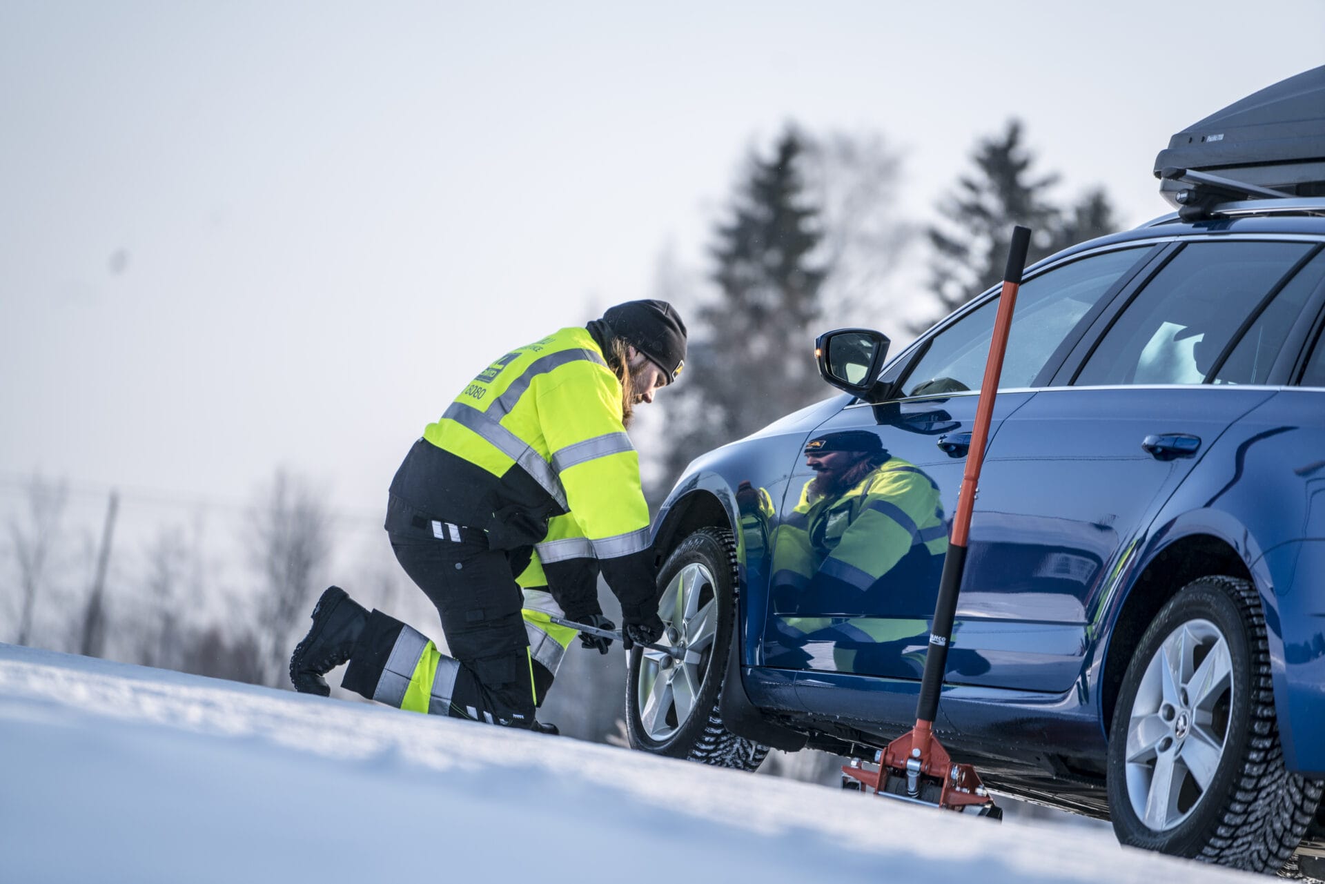 Suomen sääolosuhteet asettavat tien päällä tapahtuvalle työskentelylle omat haasteensa. Sade, lumipyry ja pimeys lisäävät onnettomuusriskiä näkyvyyden heikentyessä. Mikäli puhjennut rengas on ajoradan puolella, ei kokeneenkaan autoilijan kannata lähteä vaihtamaan rengasta itse, vaan tällöin on viisainta kääntyä ammattilaisen puoleen. Tiepalvelua käyttämällä säästyt mahdollisilta ylimääräisiltä kuluilta, joita voi syntyä esimerkiksi tunkin kaatuessa tai auton lähtiessä liikkeelle.